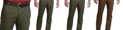 8.2 oz., mechanical stretch twill, 65% polyester, 35% cotton; Moisture-wicking, stain-resistant, wrinkle-resistant; Flex fabric for comfort and ease of movement; Sits at waist, roomy in seat and thigh, straight leg; Multi-use cell phone pocket; Longer tunnel belt loops;