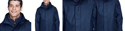 3.5 oz., 100% polyester fully seam-sealed, two-layer waterproof and breathable s; 3.2 oz, Dyed-to-match 100% polyester micro-mesh lining throughout; 6,000 mm waterproof rating and 6,000 g breathability; rollaway three-piece hood with 1¼" rain bill; waterproof reverse coil zipper at center front and pockets with semi-autolock rubber pull tabs; black contrast side panels; reflective tape at right-chest and front pockets; hook and loop hem closures at cuffs; drop-tail hem and elastic shockcord protects from the elements;