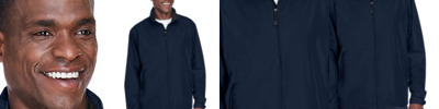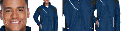 9 oz./yd² / 300 gsm, 96% polyester, 4% spandex bonded with brushed tricot with inner membrane ; 3,000 mm waterproof rating; 1,000 g breathability rating; Center front dyed-to-match reverse coil zipper; Semi-autolock rubber pull tab and chin guard; Zippered front welt pockets; Open hem cuffs; Double-needle stitching at hem and cuffs;