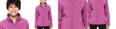bonded with 100% polyester microfleece, 7.4 oz./yd2/; 100% polyester mélange jersey; inside storm placket with chin guard; contrast center front reverse coil zipper ; stretch storm cuffs with thumb holes; chest pocket with contrast invisible zipper; lower pockets with contrast reverse coil zippers; contrast coverstitch details; audio port access through inside left pocket; adjustable shockcord at hem;