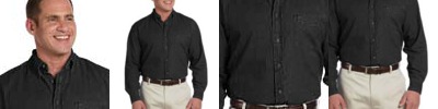 3.4 oz., 55% cotton, 45% polyester broadcloth; true non-iron performance straight from the dryer; stain release finish; fine yarn count shirting with pearlized buttons; patented pucker-free taped seams; specially fused collar, cuffs and placket; split back seam with bias cut back yoke; classic fit for professional appearance; rolled button-down collar; adjustable "Comfort Collar" gives up to an inch stretch at neck; left-chest pocket;