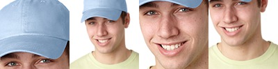 100% cotton twill visor; Vat-dyed true color, garment washed; Three panel; Pre-curved visor; Self-fabric adhesive closure; Black absorbent terry cloth sweatband; Black under visor reduces glare;