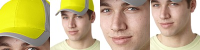 3 oz/yd2 / 105 gsm; 100% polyester microfiber; Polyester mesh inner sweatband with moisture-wicking performance; 6-panel, unstructured; Sandwiched reflective piping along edge of bill; Hook and loop adjustable back closure; Reflective flag on back;