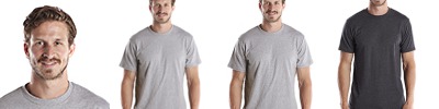 4.3 oz. 100% combed and ringspun cotton jersey; 30 singles; Heather Grey - 90/10 cotton/poly; Heather Charcoal is 50/50 cotton/poly; Relaxed retail fashion fit; Sideseamed; Shoulder-to-shoulder taping; Double needle stitching on sleeves and bottom hem; Satin label; Made in the USA;
