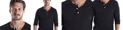 Neck with 3/8" self-binding; Topstitch detail throughout with neck crossover V; Made in USA;