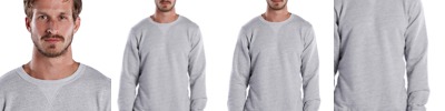 Heather Charcoal/Black: 30 singles, Htr Charcoal: 50/50, Black: 100% cotton; White/Black: 100% cotton jersey; White/Heather Charcoal: Htr Charcoal: 50/50, White: 100% cotton; White/Navy: 100% cotton jersey; 4.3 oz.; Scalloped hem; Sideseamed for a better fit; Made In USA; Perfect finish for screen printing;