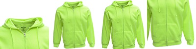 Tagless with heatseal label inside garment; Taped neck, locker patch and double-ply hood; Full silver metal zipper;