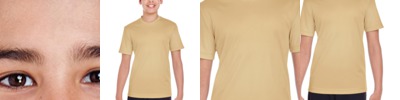 4 oz., 100% micro-polyester; Moisture-wicking; Pill-resistant; UPF 30+ protection; Snag-resistant; Athletic fit; Neck tape; 1/4" topstitching; Transitioning from heat-seal label to tear away label. Inventory may be mixed;