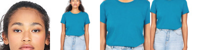 4.3 oz., 52% cotton 48% polyester, 30 singles; Ultra-fine cotton blend; Fashion fit; Side seams; Clean-finished curved bottom hem; Tear-away label; Made in a w.r.a.p. certified factory;