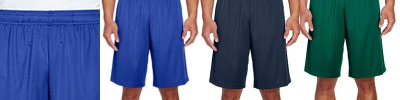 Two layers of 100% polyester wicking knit ; Wicks moisture away from the body ; Full-cut ; Fully reversible ; Each layer hemmed separately for embellishment ; 9-inch inseam ;