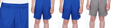 3.5 oz./yd2 / 130 gsm 100% polyester interlock; Moisture-wicking and UV 40+ protection; Side pockets; Team fit; Cationic dyes to ensure superior brightness and excellent color fastness; Elasticized waistband with flat internal drawcord; 4 1/2" inseam; Transitioning from heat-seal label to tear away label. Inventory may be mixed;