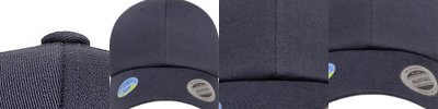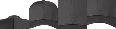 100% polyester; 3-layered sweatband and patented Stain-Block technology for moisture-wicking, stain and odor prevention; Flexfit® bond taping for thermal regulation, anti-bacteria, and odor resistance; Fused front panel; 5-panel, mid-profile, structured; Closed back, stretch fitted; Permacurv® visor; Black undervisor, 1-row stitching on visor;