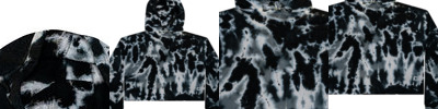 6.5 oz., 85% ringspun cotton, 15% polyester; Raw-edge waist; Hand-dyed color combinations; No two are exactly alike; Wash separately;