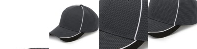 100% brushed performance microfiber polyester; Soft mesh back panels; 6-panel, structured, mid-profile; Vertical two-stripe contrast detail down center of mesh back panels; Precurved visor with contrast color sandwich; Contrast color, self-fabric, end-on-end hook and loop closure matches front panels;