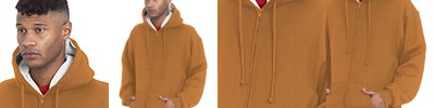 17 oz. ; 80% cotton, 20% polyester ; 100% cotton waffle thermal lining; High-quality, heavyweight pre-shrunk fabric; Contrast lining; Matching drawstrings on double-lined hood; Spandex in cuff and band with front pockets;