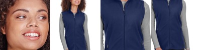 5 oz., 100% polyester fleece; 100 WT fleece; flat lock construction; zippered hand pockets;