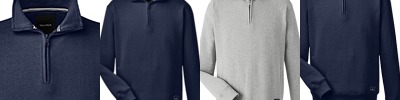 60% cotton, 40% polyester mercerized fleece; Nautica branded quarter-zip closure with stand collar; Striped neck tape; Ribbed cuffs & hem; Nautica J-Class label at left hem;