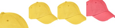 100% cotton twill; Heavy enzyme garment wash; 6-panel, unstructured; Contrasting front panels and bill, top button matches bill; Pre-curved bill; Sewn eyelets; Self-fabric closure with metal buckle and grommet tuck-in;