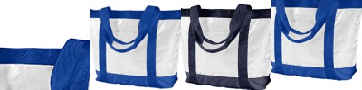 PVC; Clear PVC body; Contrasting binding; 19" contrasting top carrying handles; 12"W x 12"H x 6"D ; Requires California Prop 65 Warning Label;