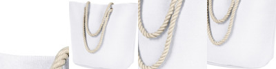 100% polyester canvas; 100% cotton sheeting lining w/ patch pocket; 25" natural rope handles with metal grommet attachments ; Magnetic snap closure; 15"W oval base; 15"W x 15.5"H x 11"D;