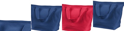 600denier polyester; Contrasting bottom panel; Contrasting webbing handles; Front zipper pocket; Zippered main compartment; Back slip panel; 15.5"W x 13.5"H x 6.75"D;