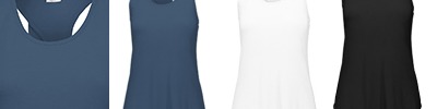 3.8 oz., 50% polyester/38% cotton/12% rayon tri-blend knit; Ladies' fit; Fits loose to body; Tear away label; Scoop neck; Racerback with keyhole; Contoured bottom;