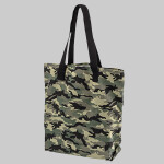 600D heavyweight material; reinforced box stitched double handles; single zipper main compartment; 3” gusset; reinforced seams; large clean embellishment areas; 47" L x 25" H x 3" D;