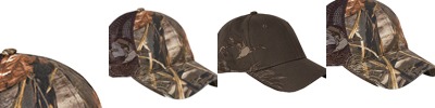 100% cotton, washed chine twill; Camo - 55% brushed cotton, 35% polyester; Soft structured, low-profile; 3D embroidery with applique; Imported; Minimum Order Quantity: 24pc/style/color;